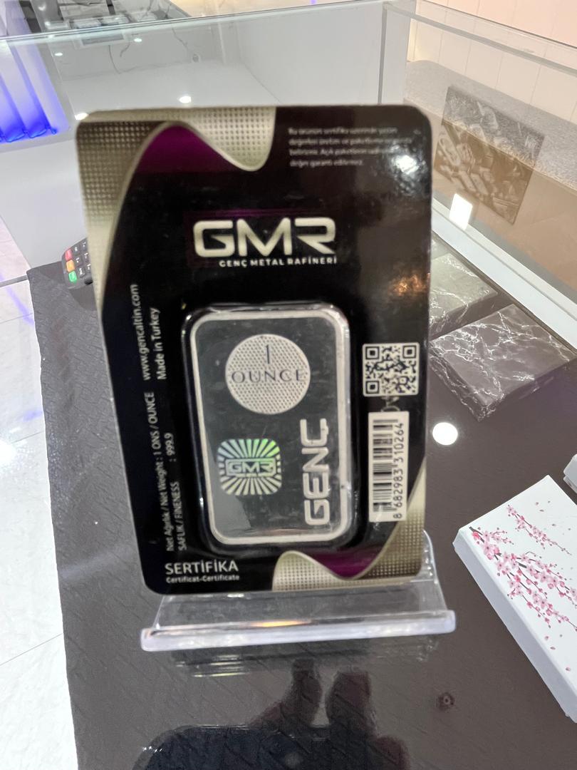 شمش نقره ۱ اونسی برند GMR ترکیه یکی از معتبرترین برندهای موجود در بازار داخلی و خارجی میباشد، که میتواند بهترین گزینه منطقی در وزن مناسب جهت شروع سرمایه گذاری امن و سود آور باشد . این شمش دارای پک کارتی پرس شده زیبا بهمراه کد شناسه کالا ، هولوگرام ضد جعل و سرتیفیکیت اصالت کالا است.